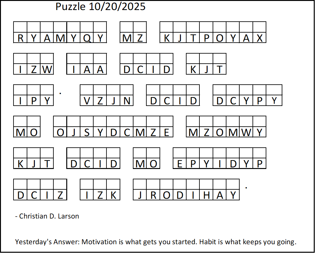 Sign up today to receive your daily cryptogram puzzle and keep your mind sharp. Already subscribed? Make sure to check back tomorrow for another thrilling challenge!