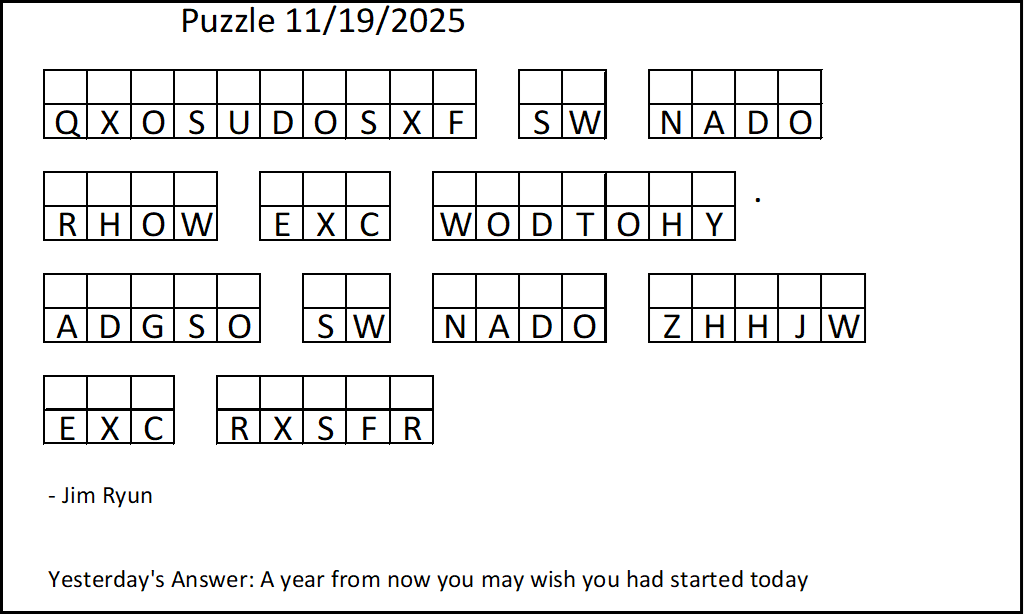 Ready to unlock the mysteries of language and challenge your mind? Each day, our newsletter delivers a carefully crafted cryptogram straight to your inbox—combining the thrill of decoding with the joy of wordplay.