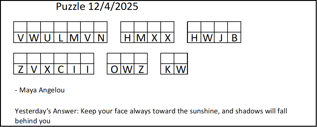 Ready to unlock the mysteries of language and challenge your mind? Each day, our newsletter delivers a carefully crafted cryptogram straight to your inbox—combining the thrill of decoding with the joy of wordplay.